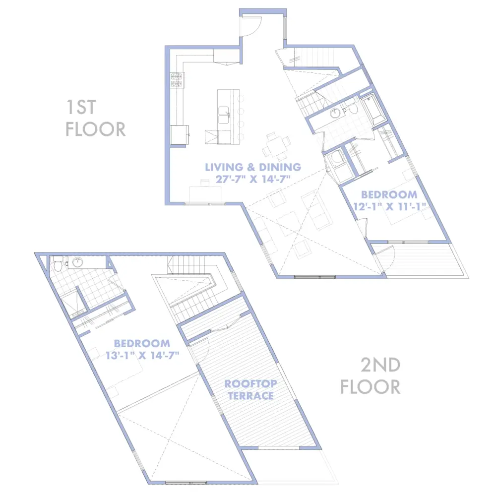 Named for Empire Slice House in The Plaza, “Empire” only made sense for this towering two-story corner signature unit. You’ll feel like the king of the castle in this baby sitting atop the corner of Classen and 16th, either from your first-floor balcony or your massive rooftop terrace. Entertain guests with ease with this vast open floor plan while taking in incredible views of Downtown to the south. Did we mention the 20’ tall ceilings in the living room? ;)